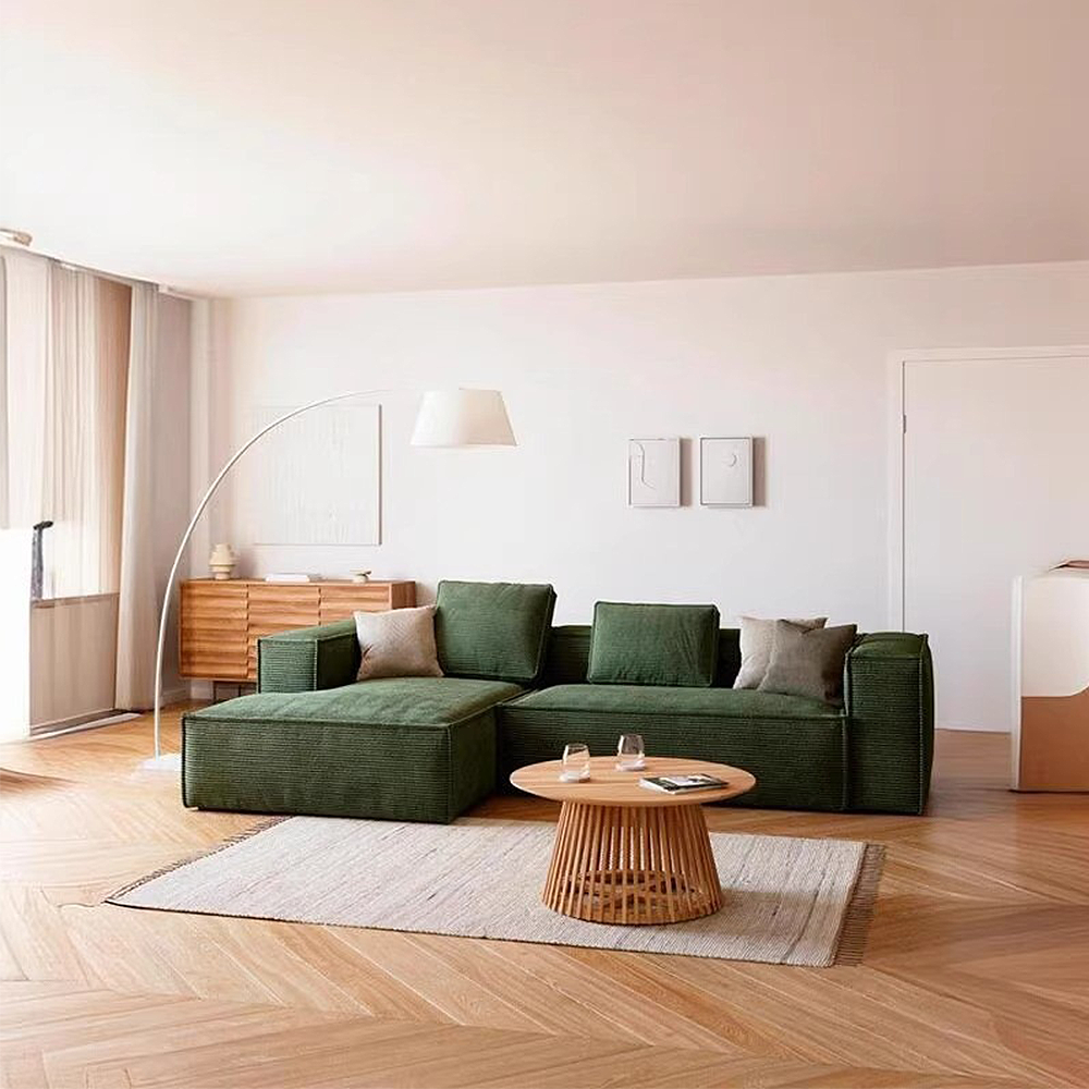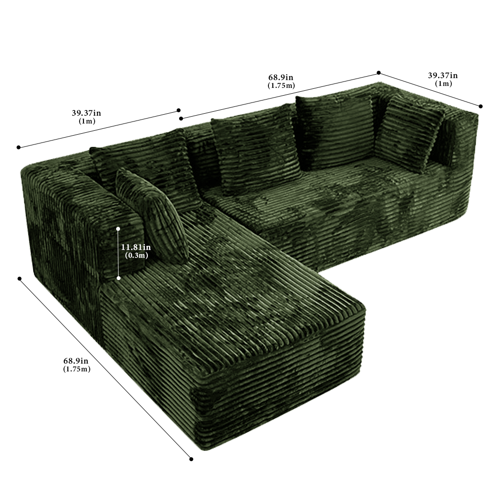 FOREST HILL 108" L-Shape Chenille Corduroy Upholstered Sofas with Side Chaise