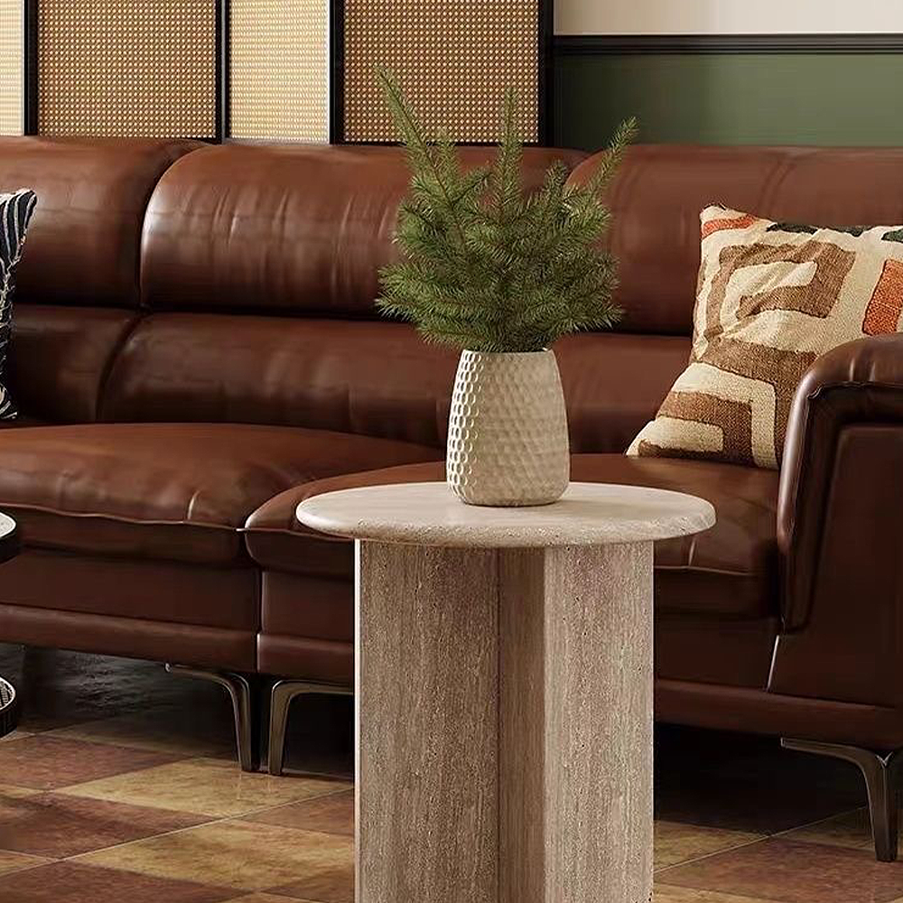 FOREST HILL Modern Small Round Natural Stone Side Table